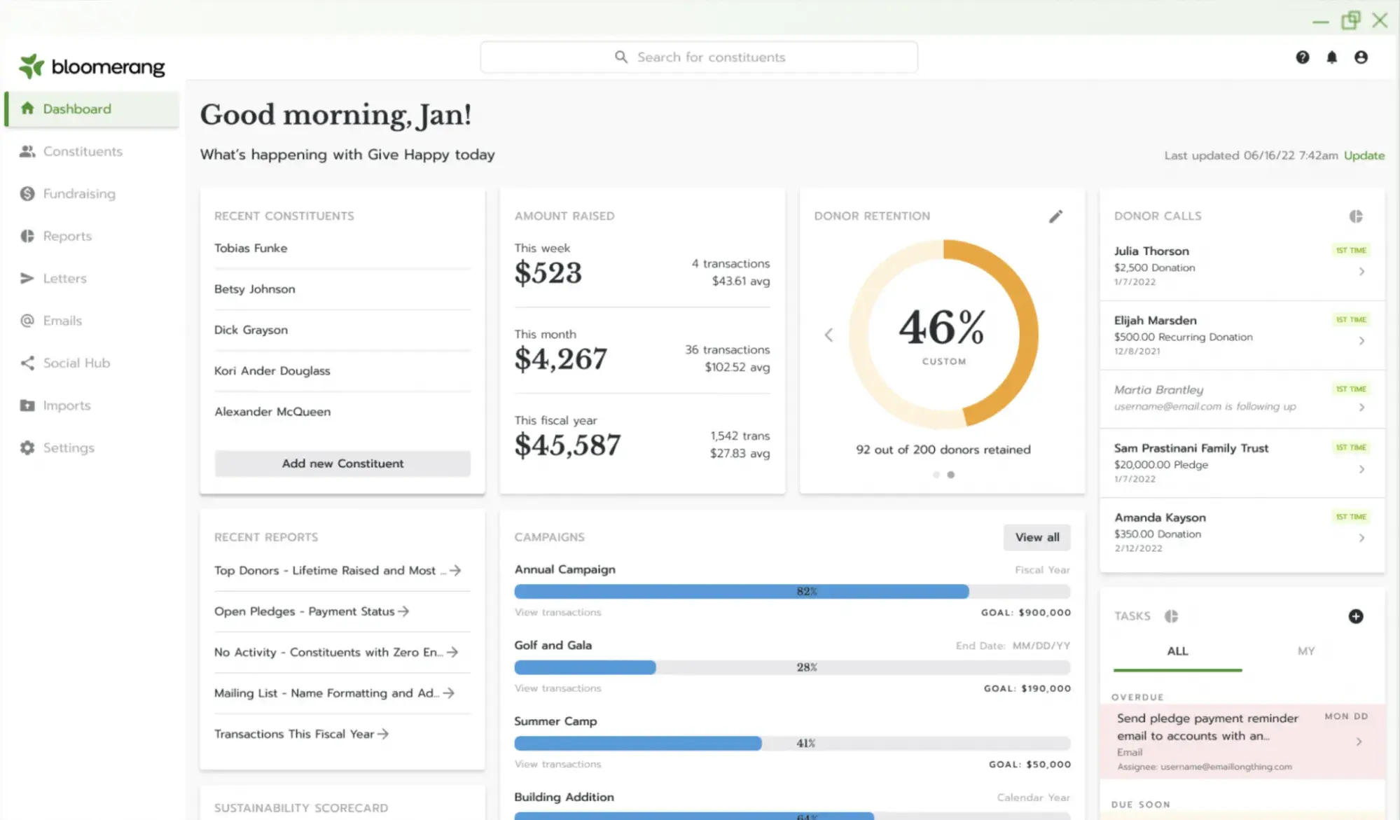 Best for: Small to mid-sized nonprofits focused on improving donor retention rates and understanding giving patterns.